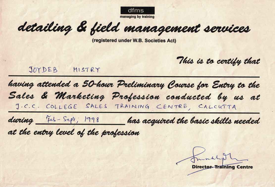 MR JOYDEB MISTRY holds a Bachelor Degree in Calcutta University ,Sales & Marketing from dfms Managing by Training from jogesh Chandra Chowdhury College ,Diploma in office Automation Course from Webel Computer Training Centre, Business Orientation and Management Training from International College.